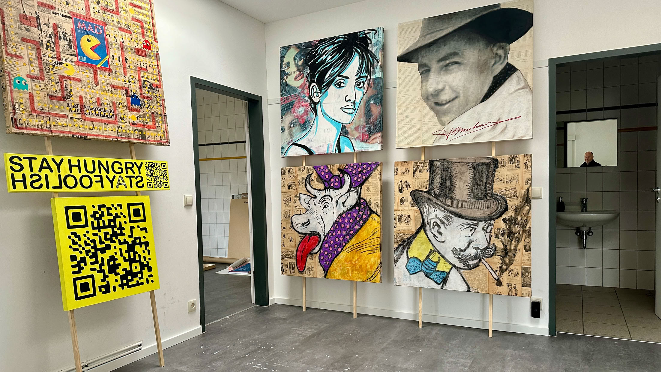 Dieses Bild ist auch das erste das ich nicht mehr auf dem Boden Zuhause gemalt habe sondern in meinem neuen „Atelier“. Im Herbst bin ich eingezogen und habe die Räume etwas eingerichtet. Ist mittlerweile ganz gemütlich darin, und jetzt auch warm. Die Heizung funktioniert jetzt einwandfrei.