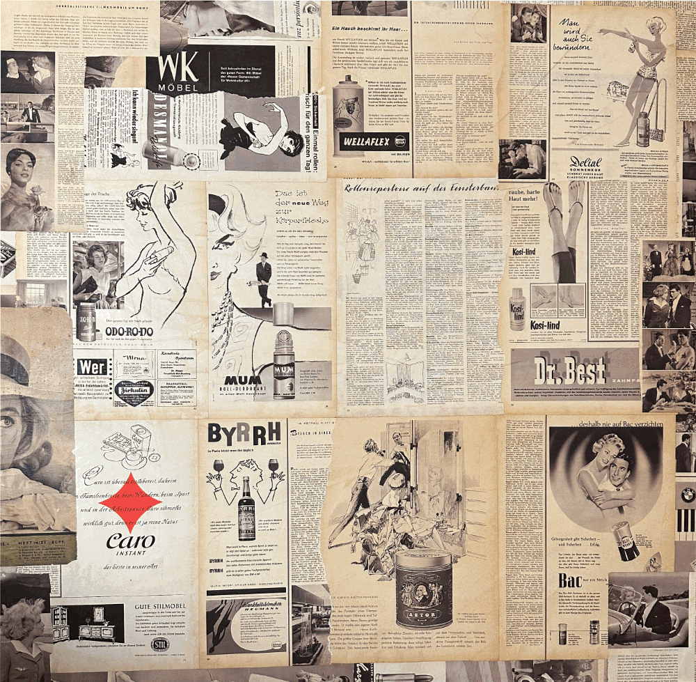 Eine tolle Person die sich ideal für ein Bild auf dem Zeitungshintergrund „Frau & Film“ von 1954 eignet. Endlich habe ich die richtige Technik gefunden um ausreichend Transparenz in dem Bild für den Zeitungshintergrund zu schaffen. Dabei kommt es durch die Bilder des Hintergrunds manchmal zu interessanten, zufälligen Überlagerungen. Die Nachbearbeitung mit Kreide funktioniert immer besser.