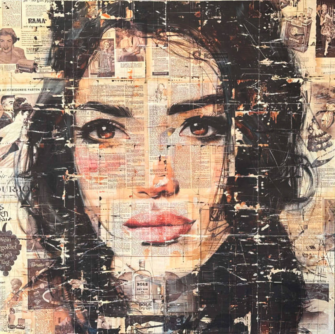 Ta Da ! Jetzt hab ich meine Stil gefunden. Gesicht, Vintage, leichte Farben, Zeitungshintergrund.