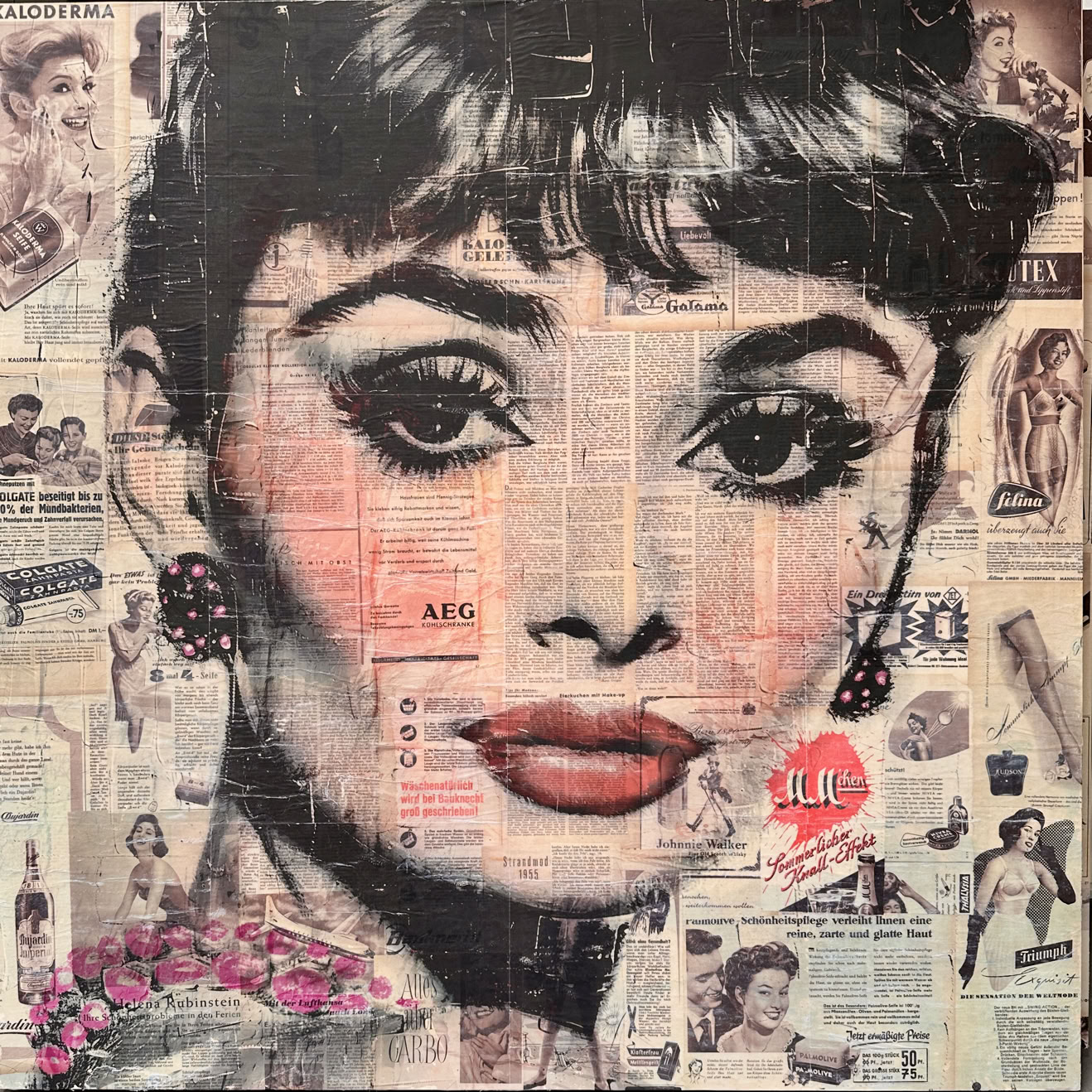 Audrey Hepburn (* 4. Mai 1929 als Audrey Kathleen Ruston in Ixelles/Elsene, Belgien; † 20. Januar 1993 in Tolochenaz, Schweiz) war eine Schauspielerin britisch-niederländischer Herkunft.Ich habe viele Bilder generieren lassen, bis ich annähernd dieses erhalten habe. Danach noch am Desktop und dann auf dem iPad mit dem Stift bemalt.