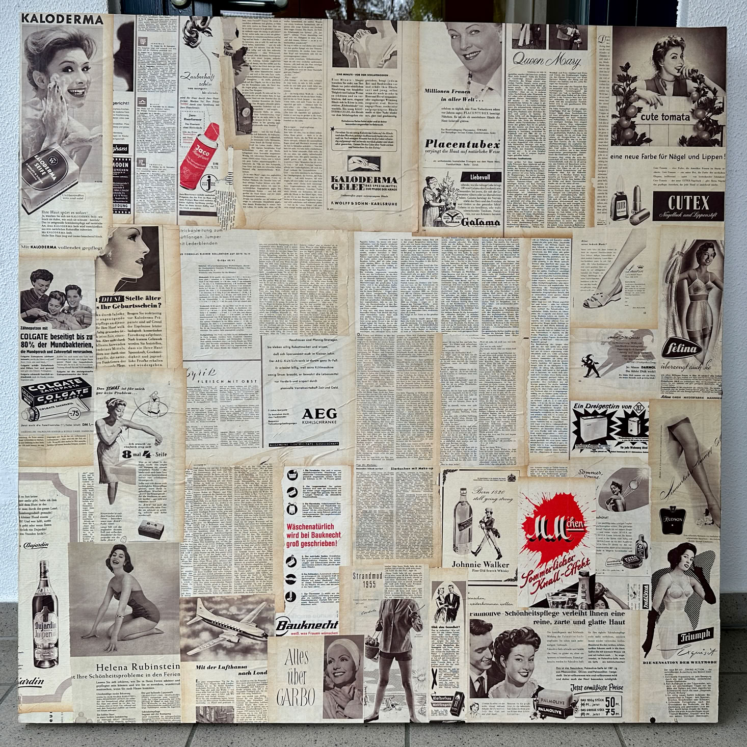 Ab diesem Bild verwende ich jeweils nur eine Zeitschrift Film & Frau als Hintergrund. Die nicht verwendeten Seiten habe ich hinter den Bilderrahmen in eine Sichthülle gelegt.