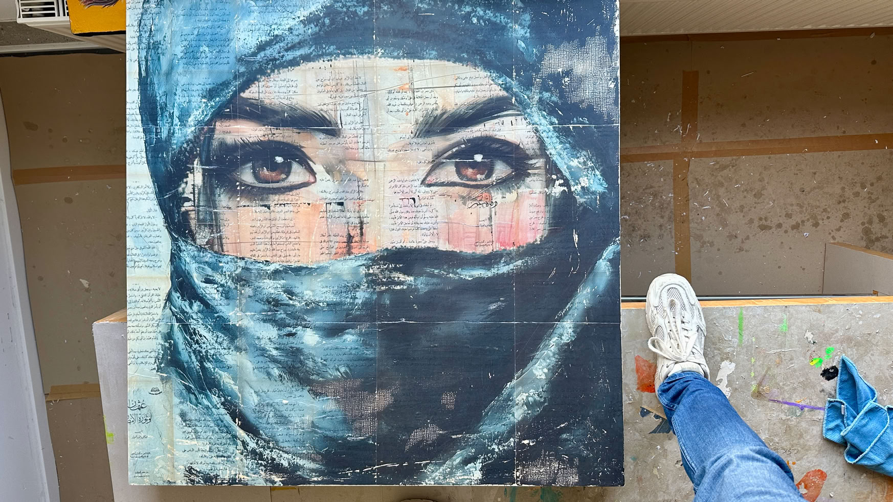 Inspiriert von einem Kunstphoto das Freunde von mir als Foto von der viennacontemporary 2024 aus Wien gesendet haben wollte ich auch eine Frau mit Burka kreieren. Ich finde die Augen kommen durch das Verhüllen des Gesichtes noch stärker zur Geltung. Als Bildhintergrund habe ich alte Isalm Arabische Geschichten الخلفاء الراشدون aus einer alten Buchreihe ersteigern können. Der Ideale Hintergrund passend zu einer Frau mit Burka.