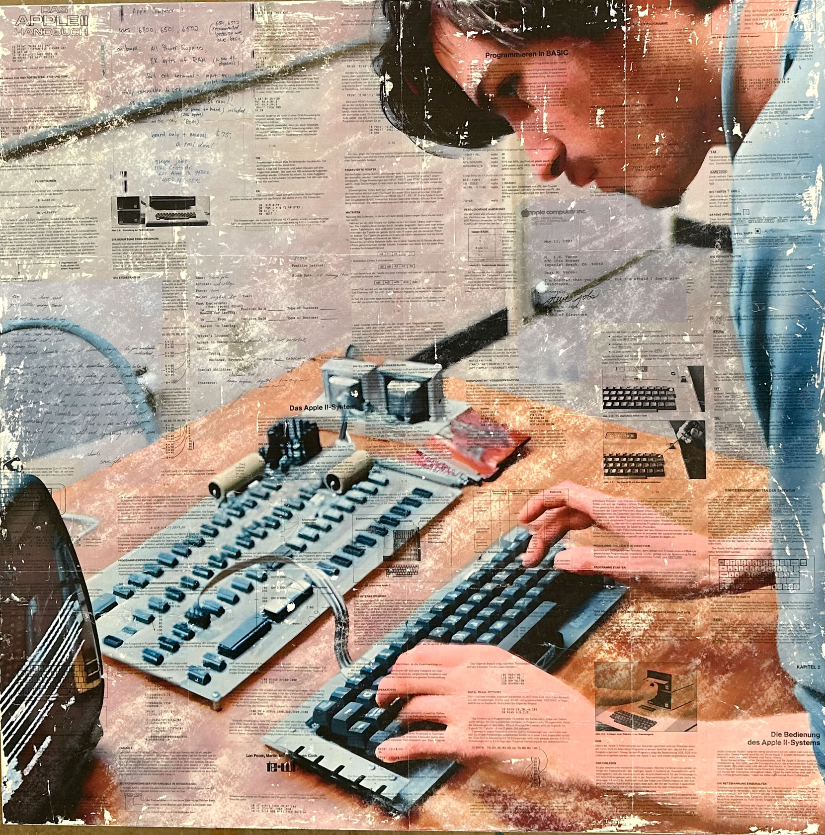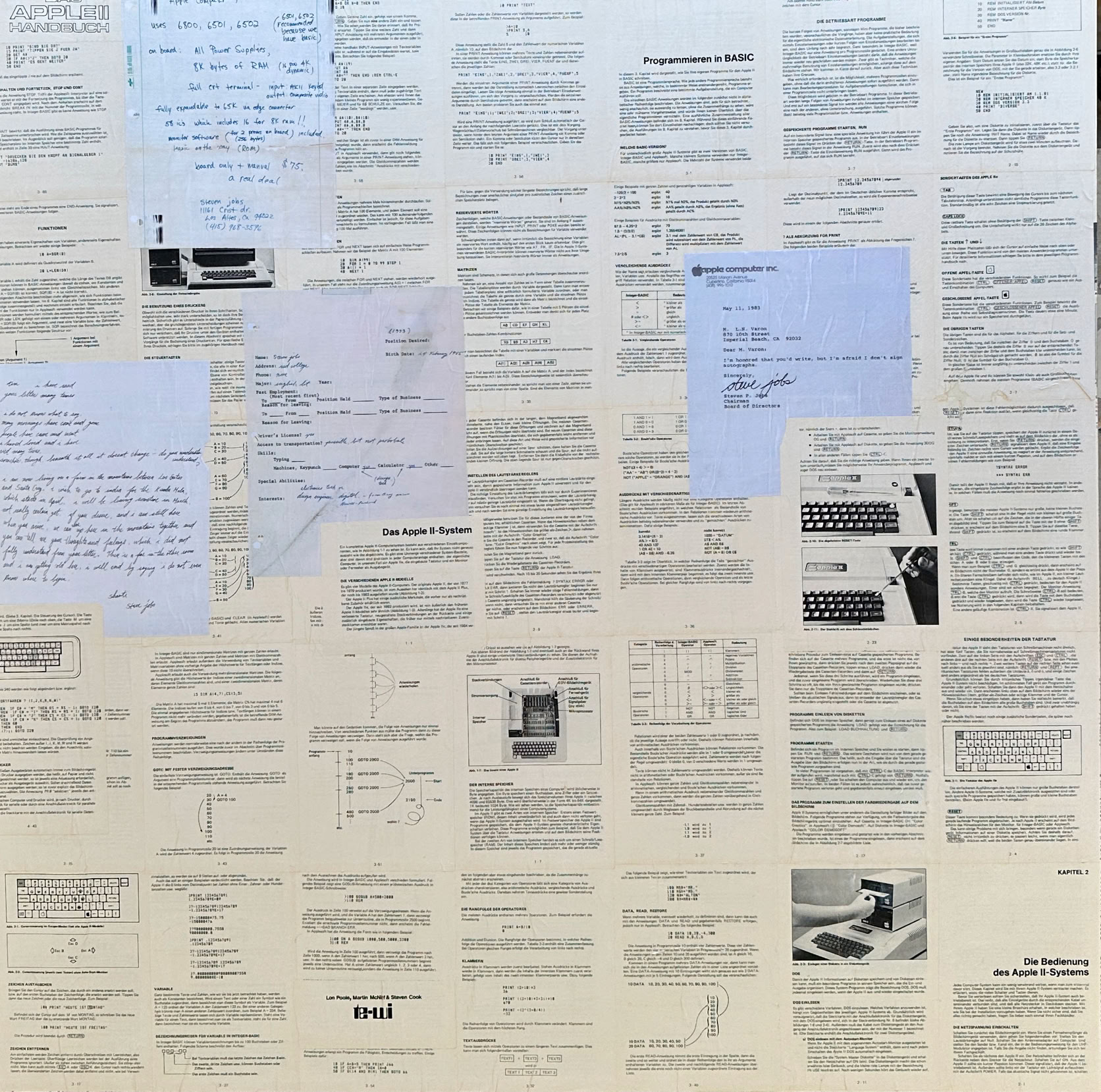 Das Gemälde ist auf einem Untergrund aus Kopien seiner Originalbriefe und Notizen sowie einem Original Handbuch über den Apple II Computer von 1983, entstanden – ein Tribut an den kreativen Prozess, der oft im Verborgenen beginnt, bevor er die Zukunft formt. Es erinnert daran, dass große Ideen oft unscheinbar beginnen und dass Begeisterung und Beharrlichkeit entscheidend für Erfolg sind.