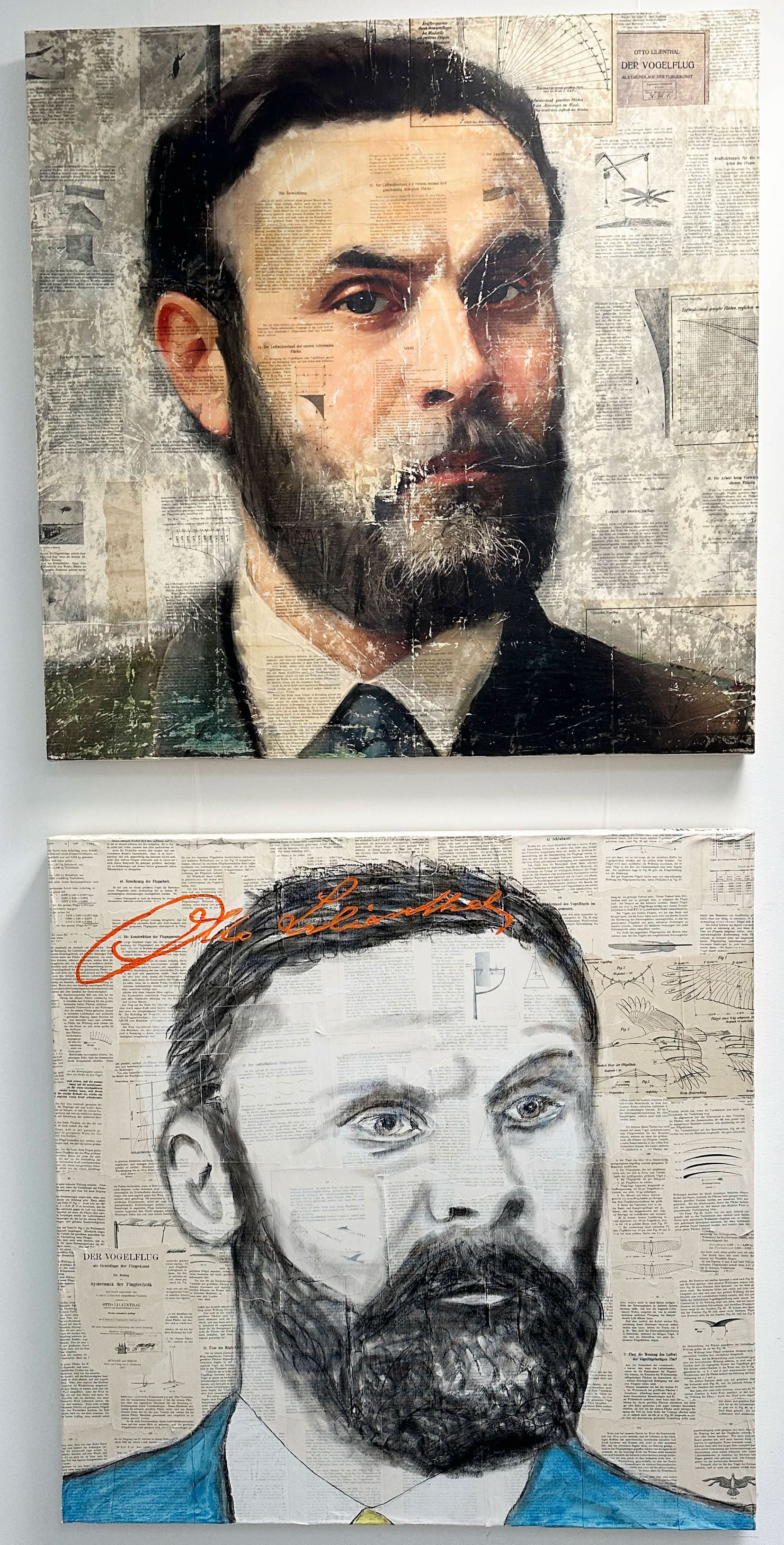 Weil mich das Leben und die bahnbrechende Entdeckungen von Otto Lilienthal so begeistert haben, habe ich ihn jetzt bereits zu 3. mal gemalt bzw. gedruckt. Hier meine beiden älteren Versionen: