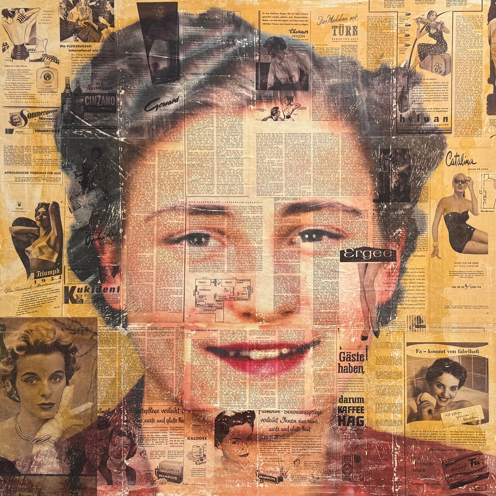 Thomas zeigt mir zufällig ein altes Foto von seiner Mutter und ich dachte sofort, das sich das Porträt ideal auf einem Hintergrund der Zeitschrift Film & Frau von 1950 eignen würde.